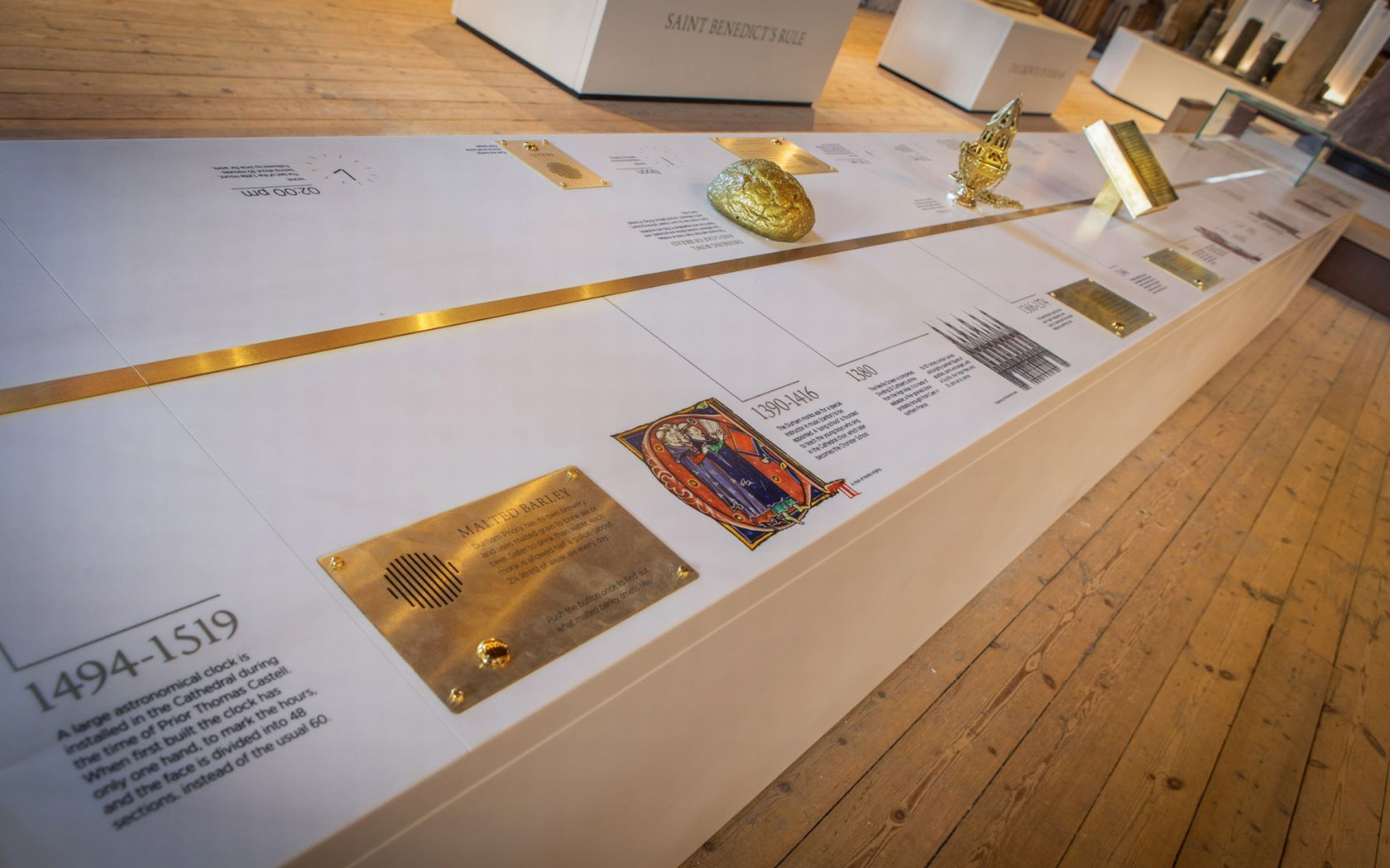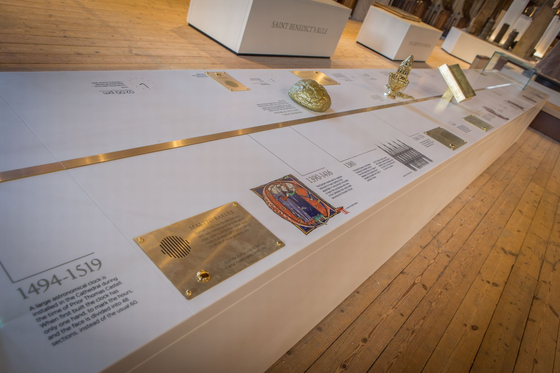 Open Treasure is an award-winning exhibition set within the incredible, 900-year-old Durham Cathedral. The exhibitions, presented within the historic Monks’ Dormitory and medieval stone vaulted Great Kitchen, explore the story of St Cuthbert and the spread of early Christianity, monastic life at the Priory and Cathedral life post-reformation across four unique architectural spaces in this stunning UNESCO World Heritage Site.