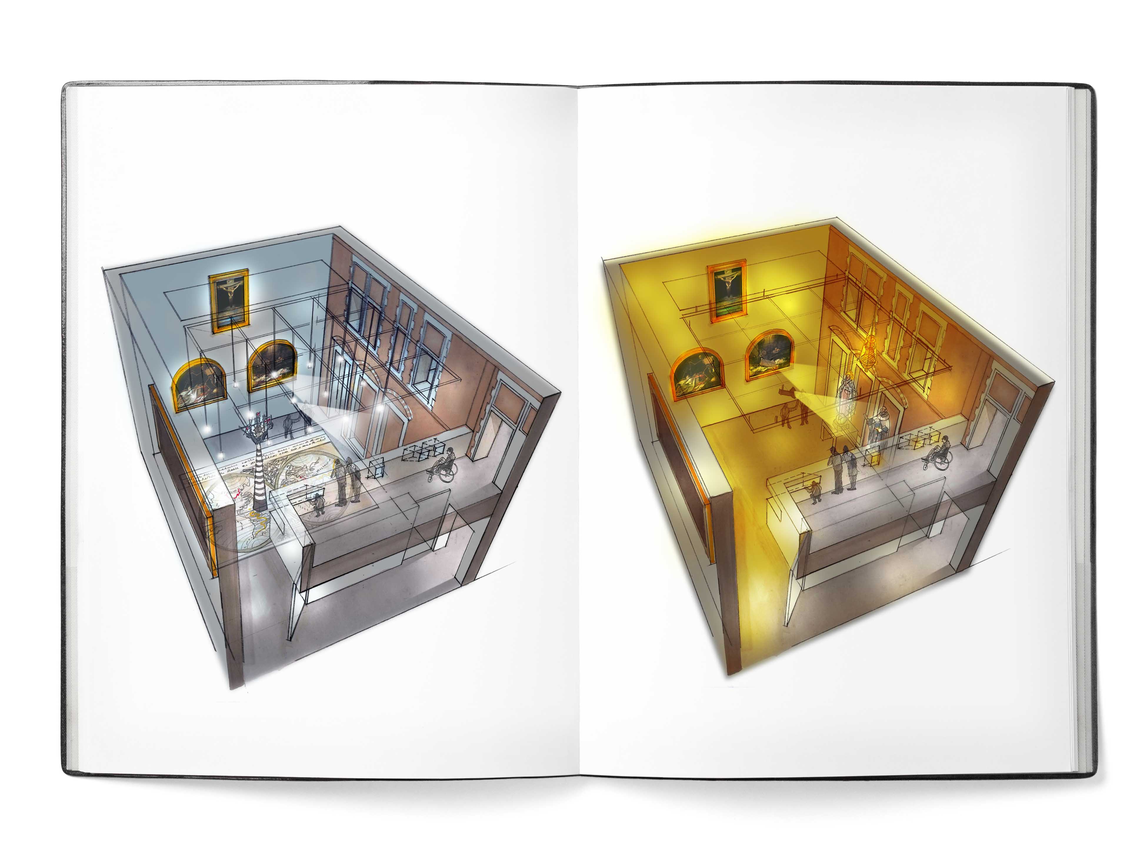 The project’s intention was not to create an art gallery in the traditional sense, but instead create a piece of experiential design that would weave these artworks together and bring forward a more captivating and compelling narrative. The approach used was perhaps closer to theatre or even opera design, but unlike a theatre or opera, where the audience is seated, we invite visitors to walk onto the stage, and meet the principal players.